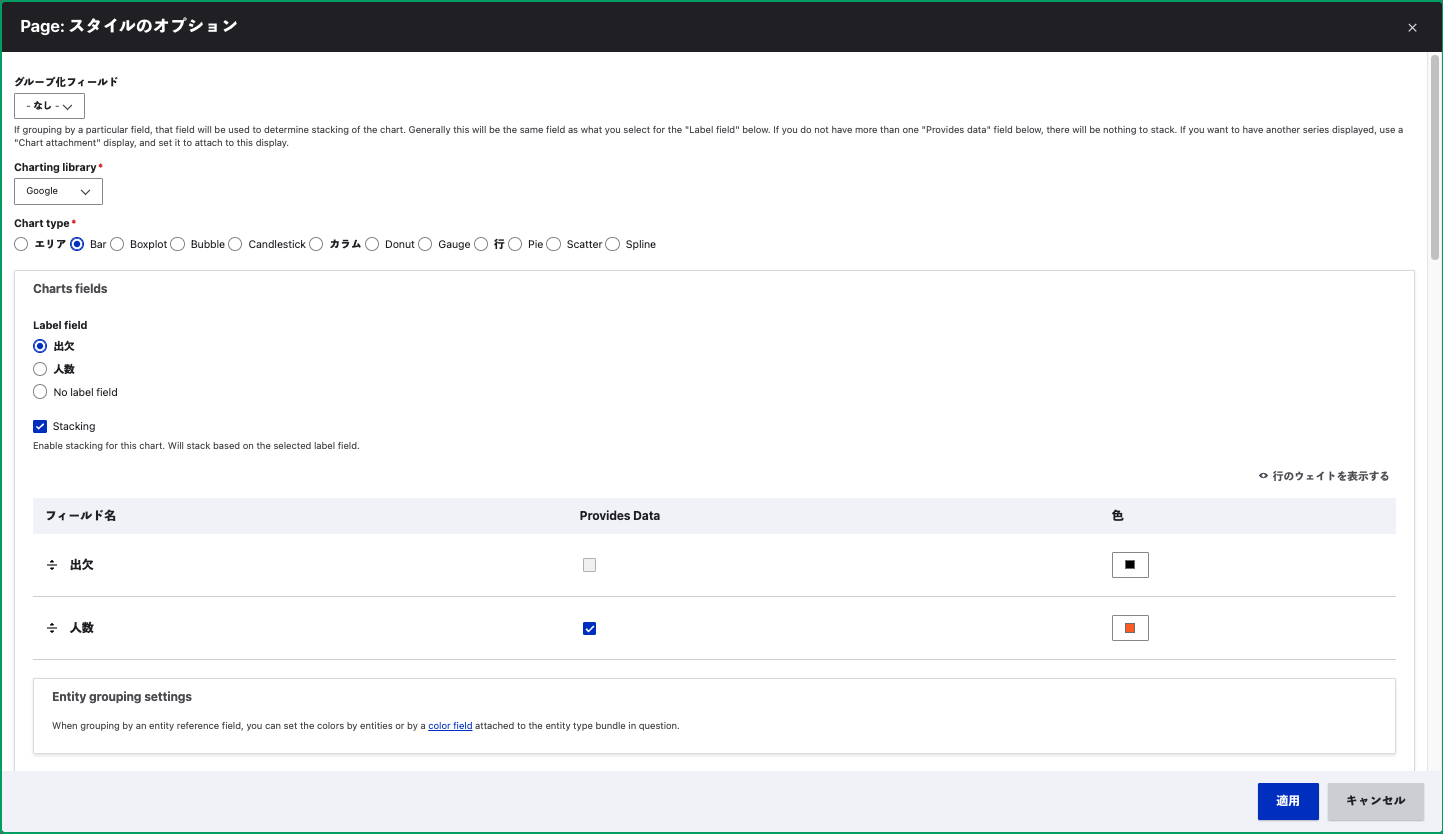 フィールドセクションにて出欠と人数の2項目を設定する。